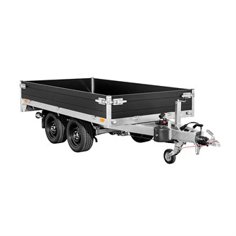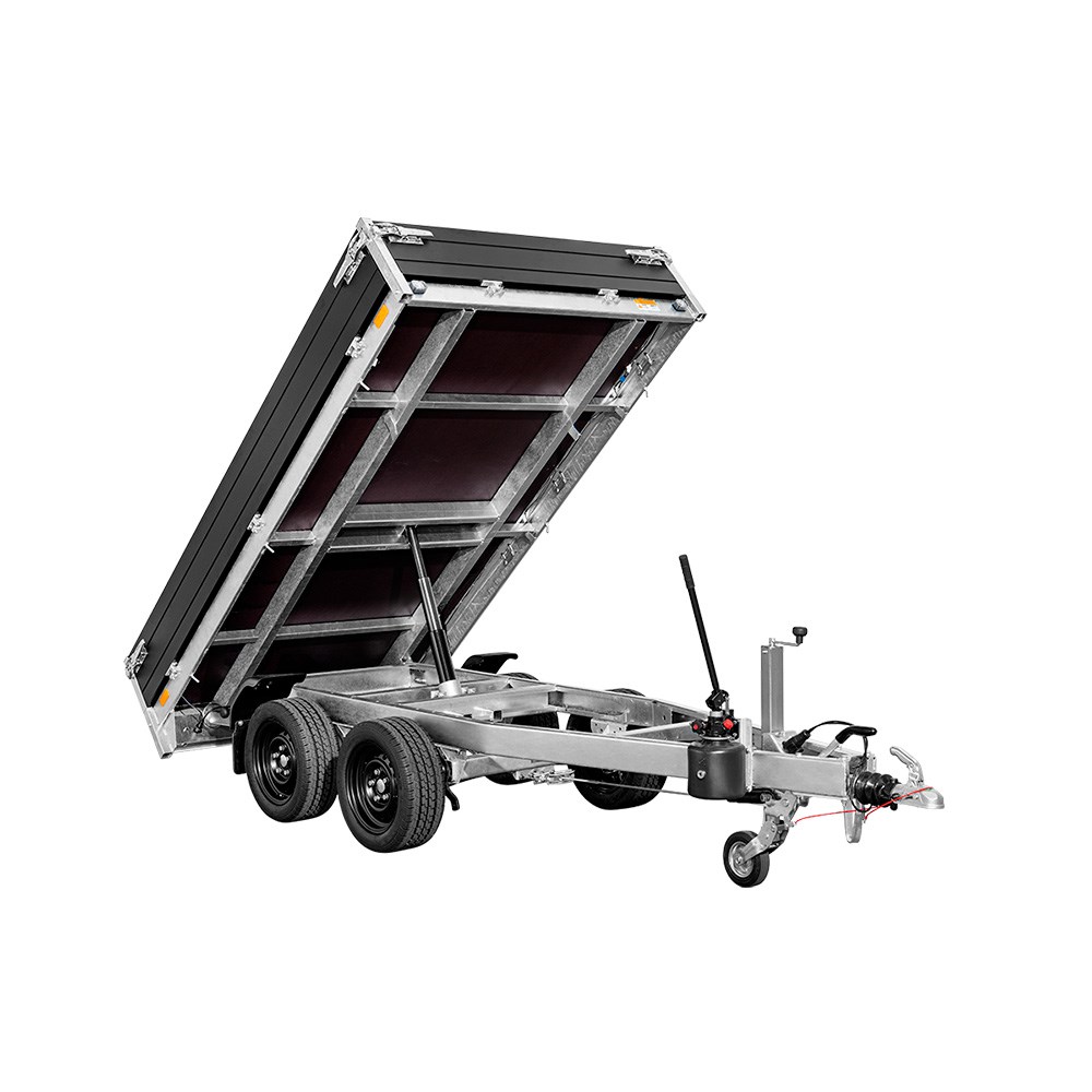 Med den store tippevinkel på 42 grader er det nemt at læsse gods af, og du kan bruge den manuelle pumpe til at tippe ladet med eller med fordel købe den elektriske pumpe. Så skal du bare trykke på en knap.