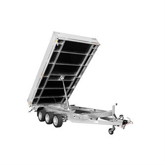 Dette er Saris' store, treakslede tiptrailer. Her får du en sand topmodel af en trailer med kapacitet til enhver opgave, og samtidigt alt det bedste i udstyr og knivskarpe køreegenskaber.
