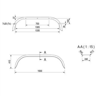 Skærm tandem B240 R400 L2000 S1500mm stål