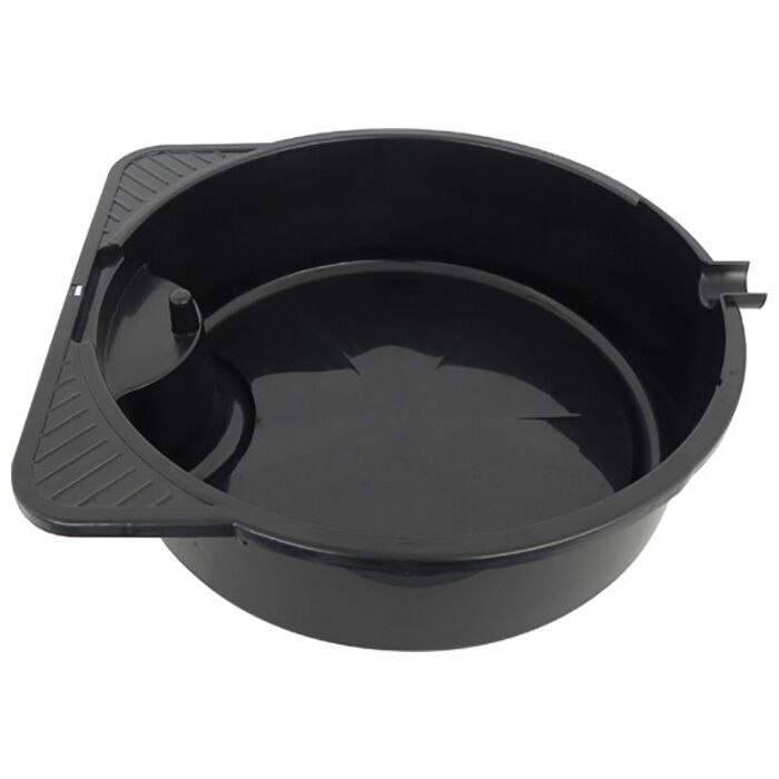 Praktisk rundt fad til brug ved olieskift. Monteret med hældetud, der gør det let at tømme olie over i en anden beholder.