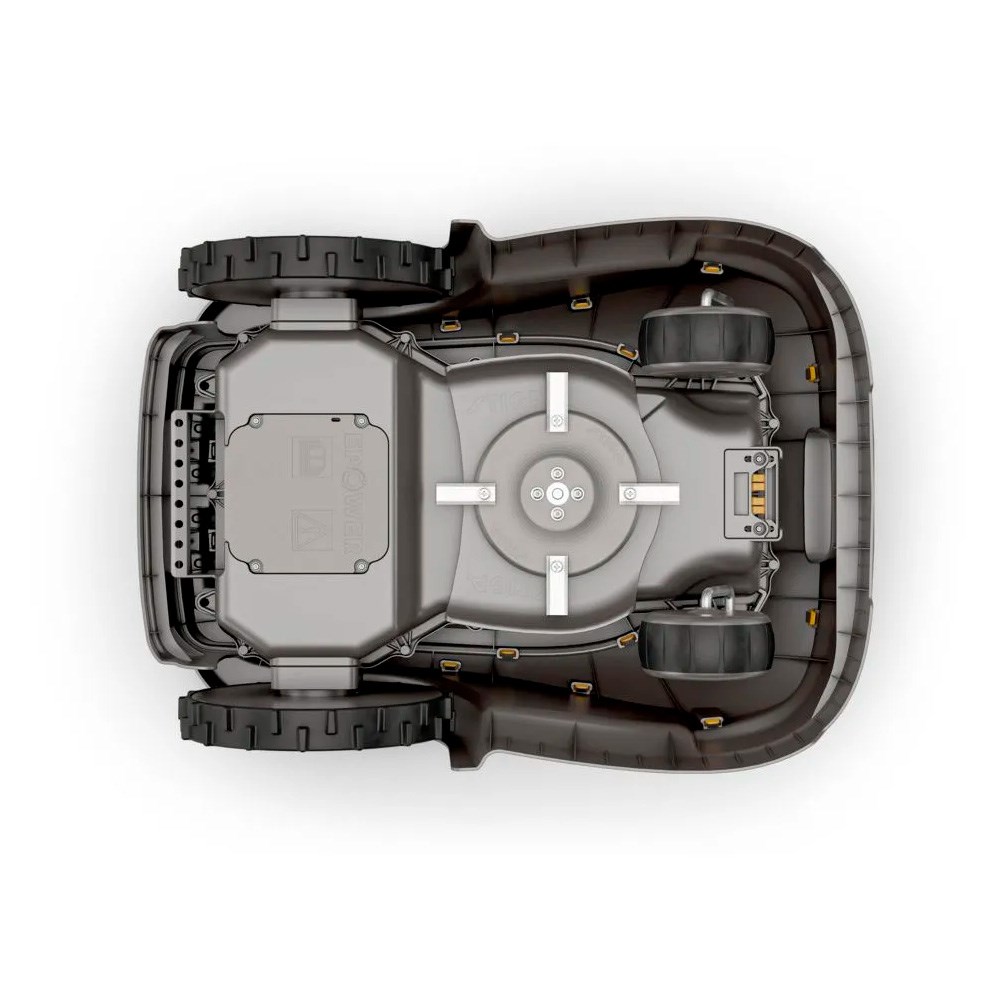 Den fremragende lydisolering holder motorens støj inde bag robottens robuste skjold, der let kan fjernes uden brug af værktøj, f.eks. ved rengøring. Rengøring med en haveslange er også mulig, hvor du skal sikre, at robotten er i arbejdsposition (vandret, hjul nedad). Knivene kan rengøres med en børste, og direkte vandstrøm må ikke bruges, når robotten er vendt på hovedet.
