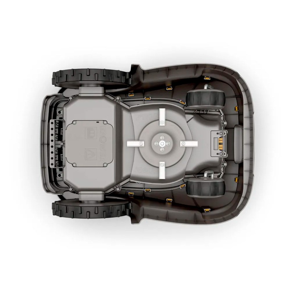 Den fremragende lydisolering holder motorens støj inde bag robottens robuste skjold, der let kan fjernes uden brug af værktøj, f.eks. ved rengøring. Rengøring med en haveslange er også mulig, og hvis du vælger denne metode, skal du sikre, at robotten er i arbejdsposition (vandret, hjul nedad). Knivene kan rengøres med en børste, og direkte vandstrøm må ikke bruges, når robotten er vendt på hovedet.