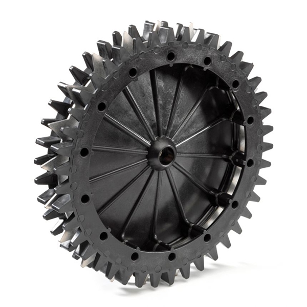 Det tandede hjul med tandkrans i metal er lavet til forbedret greb og bedre klipning på hældninger.