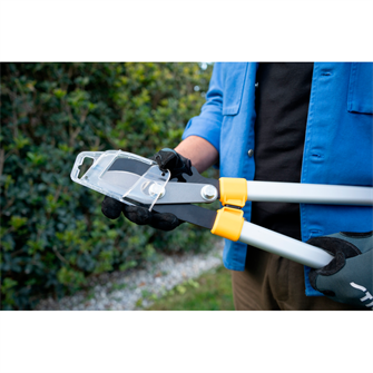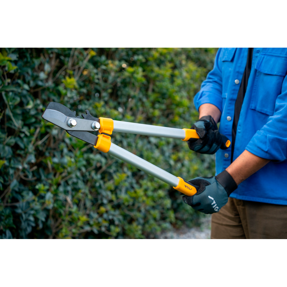 Den lysegule finish gør lopperen nem at se i græsset eller tæt vegetation, mens det medfølgende beskyttelsescover sikrer sikker opbevaring. Kombinationen af holdbarhed, ergonomi og præcision gør STIGA Bypass Lopper til det perfekte redskab for gartnere, landskabsarkitekter og professionelle, der ønsker pålidelige og effektive beskæringsværktøjer.