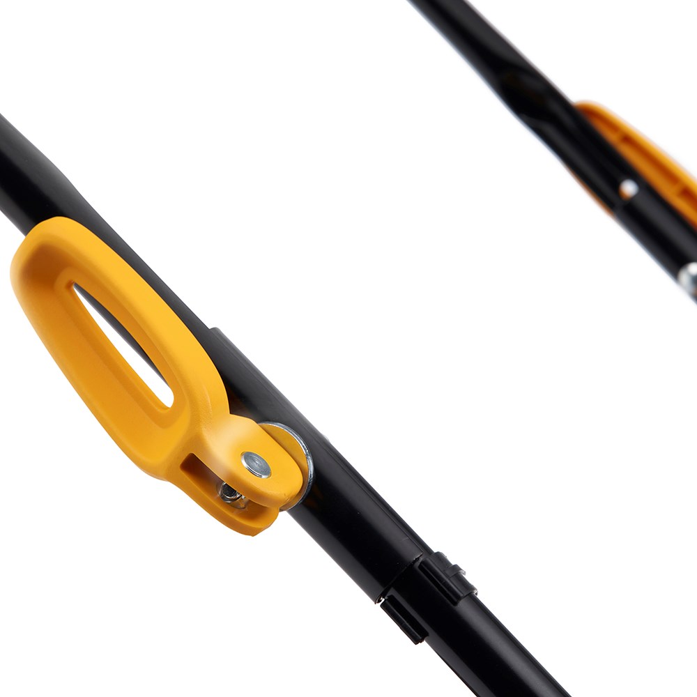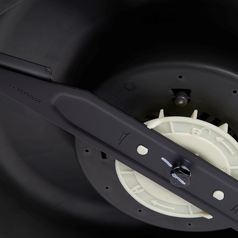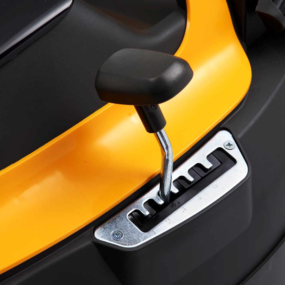 Bag det justérbare styr får du desuden komfortable softgrips, som gør maskinen mere behagelig at køre med. Styret kan justeres i højden i to trin, og derudover kan det også foldes sammen, ligesom opsamleren også kan det.