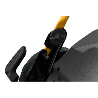 På styret er et betjeningspanel, som du bruger til at starte og stoppe maskinen, ligesom du kan vælge mellem seks kørehastigheder. Der er nemlig elektronisk variator på Combi 748e V, som kan stilles i trin fra 2,5 til 5 km/t. Styret er justerbart og kan foldes sammen i forbindelse med transport eller opbevaring.