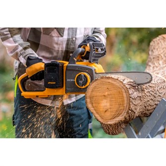 Udstyret med to højkvalitets 20V ePower-batterier (4Ah), leverer denne motorsav en imponerende kraft, der giver en fantastisk skæreydelse. Drevet af et dual batteri-system, leverer CS 300e Kit mere end 80 præcise snit på en enkelt opladning, selv gennem træstammer med en diameter på op til 120 mm.