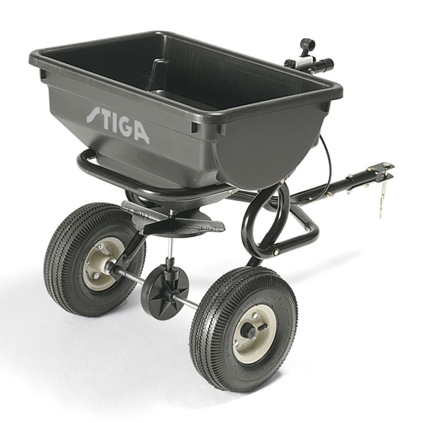 Sprederen, som vejer 8 kg, kan benyttes på alle havetraktorer og frontklippere fra STIGA.