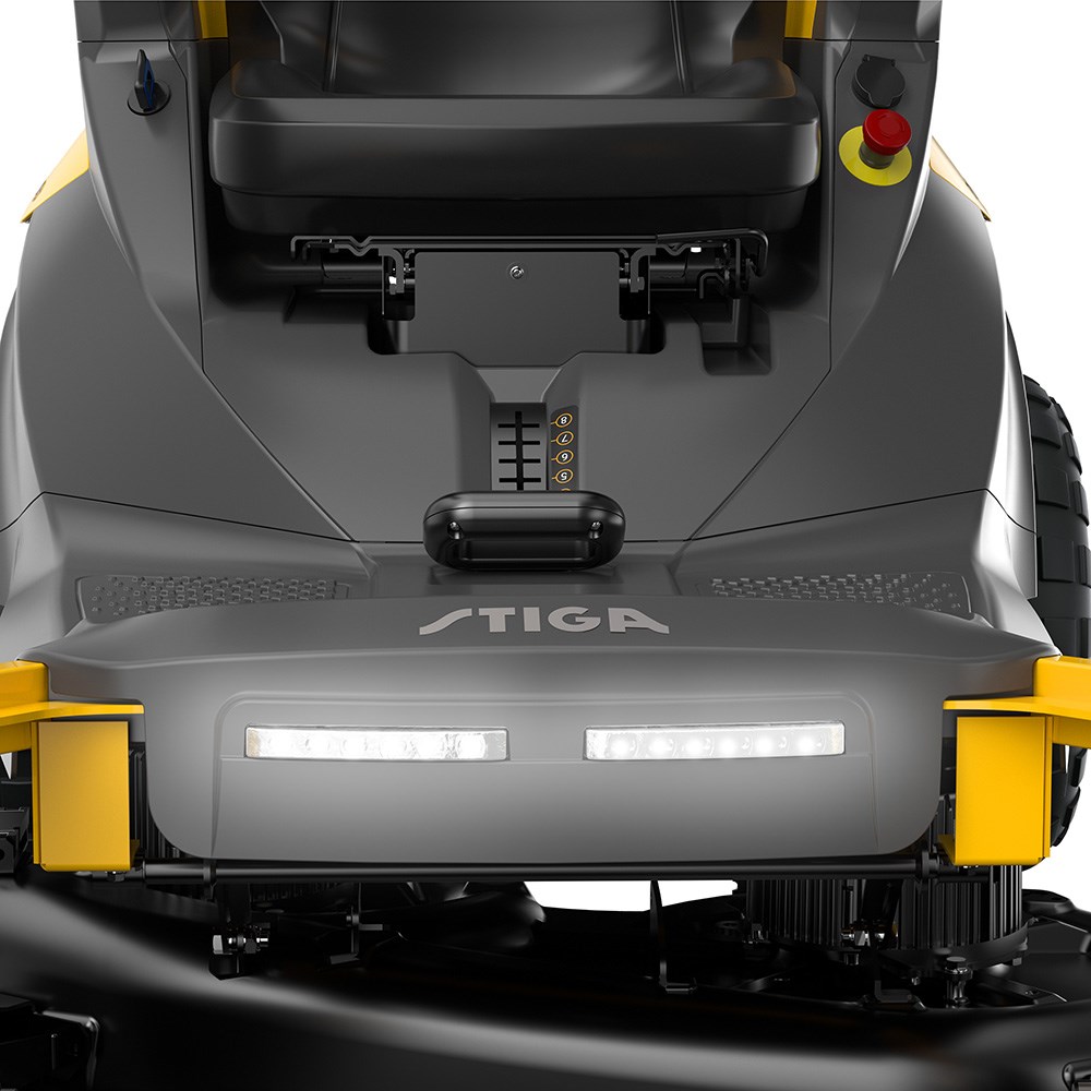 Samtidigt får du masser af kapacitet. Gyro 700e kører med den nyeste batteri- og motorteknologi fra STIGA, så her er batteriet på 64Ah, og leverer 6,2 kW effekt. Det er nok til at klare 8.000 kvadratmeter græs på en opladning, og det gør det til én af tidens stærkeste batteridrevne havetraktorer. Det sker takket være den store klipper på hele 108 cm i bredden. Det er ikke helt på niveau med de største benzinmaskiner i klassen, men det giver en fantastisk effektivitet på fremtidens drivstof.