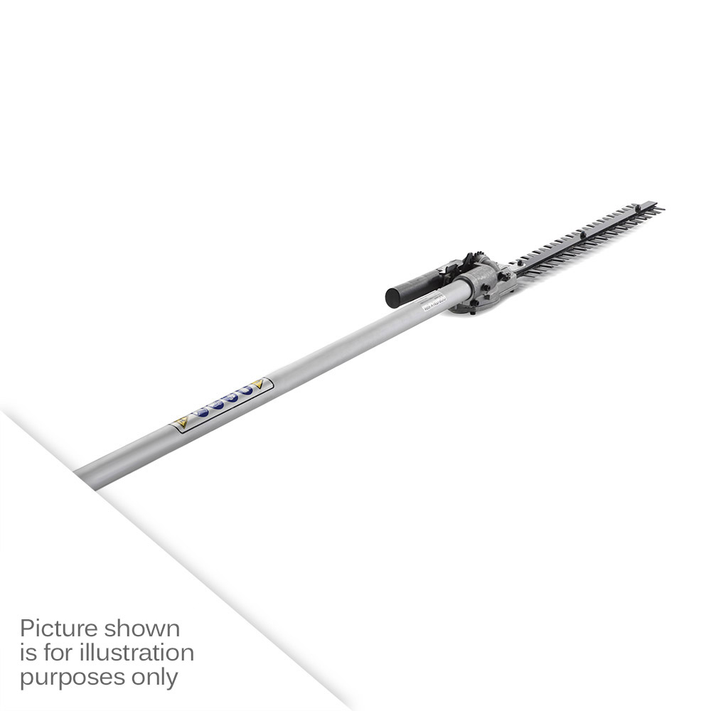 Med dette klippe-aggregat til din buskrydder eller græstrimmer får du mulighed for at kunne klippe og trimme høje hække og buske hurtigt og sikkert.