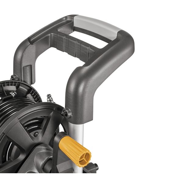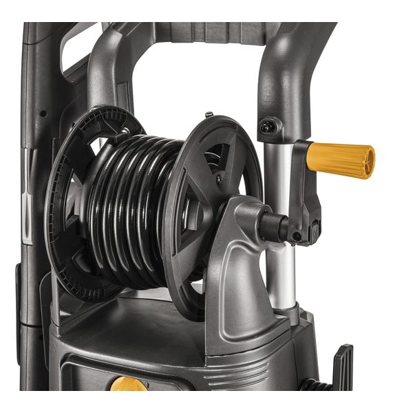 Desuden har maskinen en slangerulle og et praktisk opbevaringsrum til ekstra dele og tilbehør.