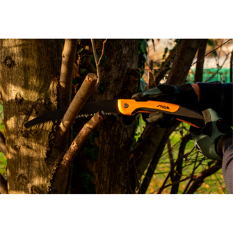 Saven er sammenklappelig, hvilket gør den enkel at opbevare og transportere sikkert. Dette gør STIGA Folding Beskæringssav til et ideelt redskab for gartnere, arborister og alle, der ønsker et pålideligt og kraftfuldt værktøj til beskæring af grene og buske.