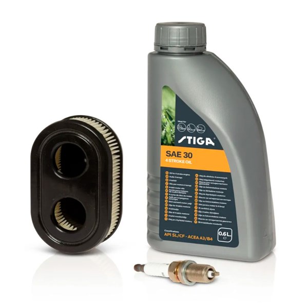 Sættet indeholder alt, du behøver for standardvedligeholdelse: 0,6 liter 4-takts olie, tændrør og luftfilter. Regelmæssig brug hjælper med at bevare motorens optimale funktion.