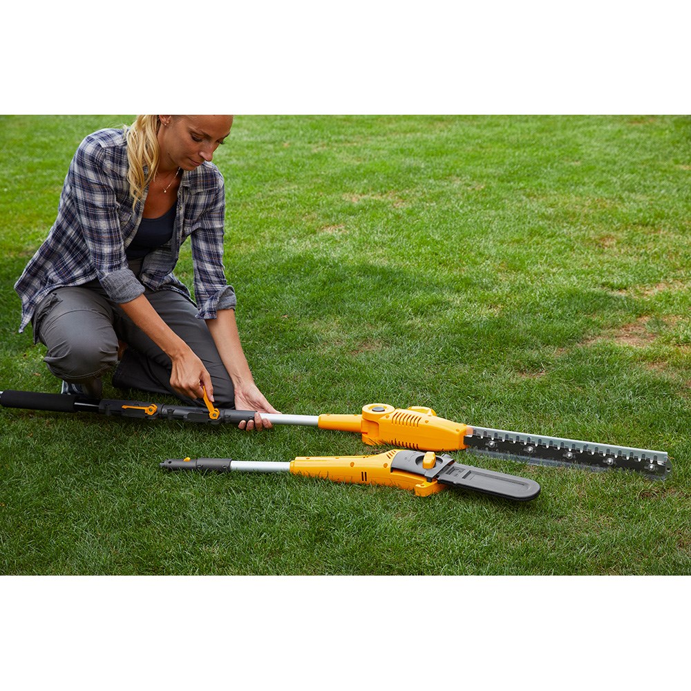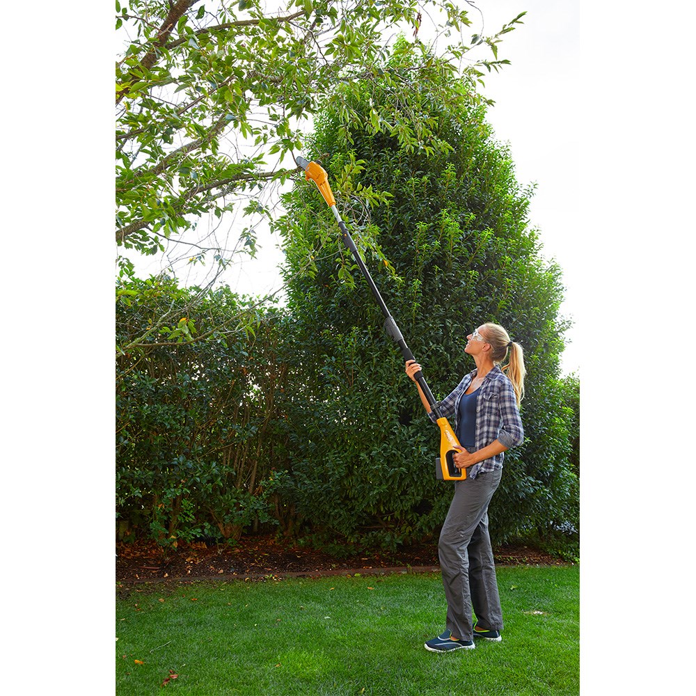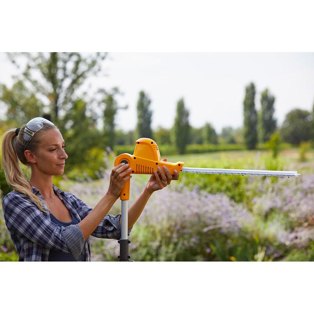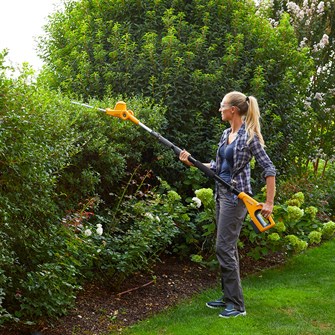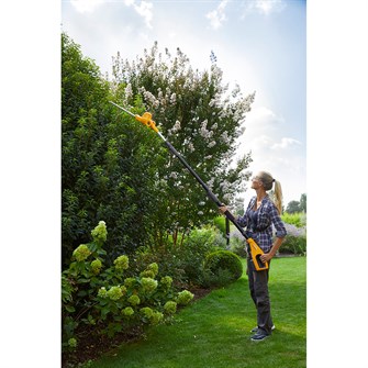 Med STIGA MT 100e kan du nemt nå nye højder. MT 100e er nemlig et multi-tool med både stangsav og stanghækkeklipper i én og samme maskine, og det giver dig ekstra rækkevidde i haven, når der skal klippes hæk, trimmes træer og så videre.