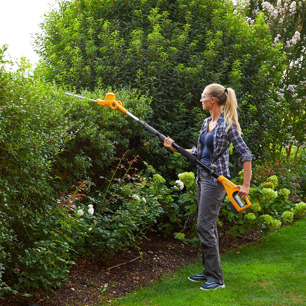 Med MT 100e får du masser af rækkevidde på stedet, og du kan derfor stå sikkert på jorden i stedet for at klatre på stiger for at passe haven.