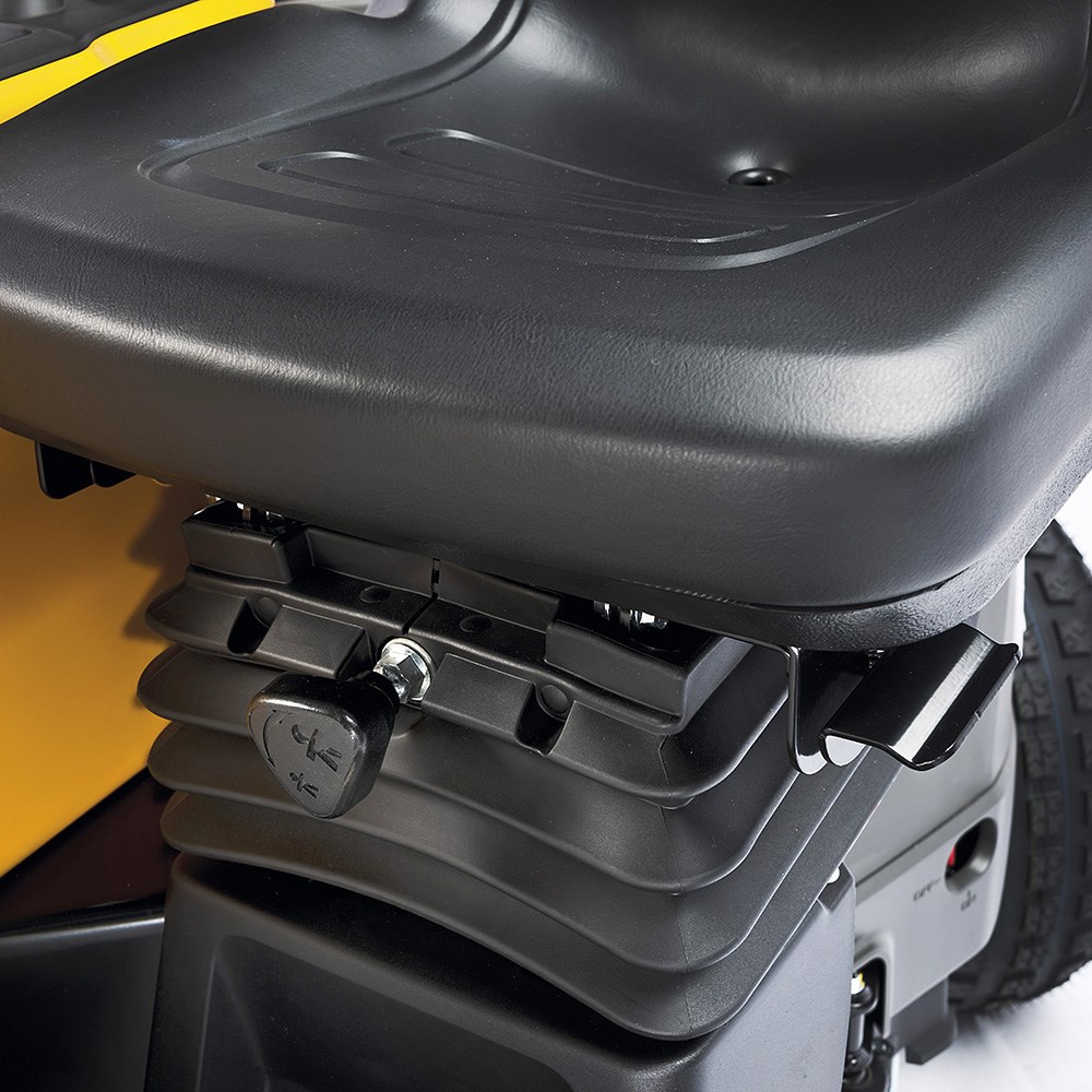 Bag rattet får du fuld komfort og masser af overblik. Sædet er af STIGA's mest komfortable slags med ekstra højt ryglæn, armlæn og affjedring, ligesom sædet kan justeres. Alle funktioner er samlet i et panel til brugerens højre side, og de ti faste klippehøjder vælges elektrisk.