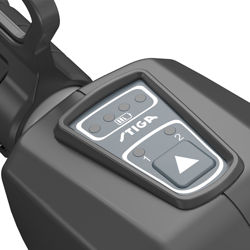 PS 900e benytter som den øvrige 900-serie batterirygsækken BH 900e med to gange STIGA E-Power E475-batterier på 48 volt og 7.500 mAh stykket.