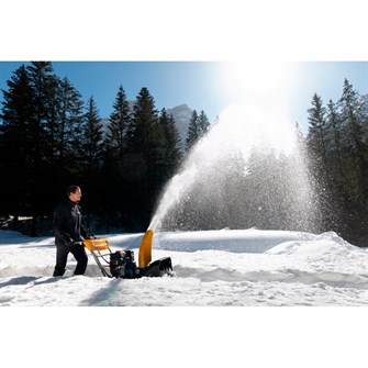 Maskinen drives af en kraftfuld 252 cc benzinmotor, som sikrer høj ydeevne selv under krævende forhold. Den savtakkede sneskrue på 62 cm i bredden gør det muligt at bearbejde både tung og hård sne, der derefter kastes op til 10 meter væk.