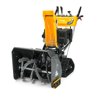 STIGA ST 5266 P TRAC er en robust og professionel benzindrevet sneslynge udviklet til effektiv rydning under selv krævende vinterforhold. Den er udstyret med larvefødder, som giver et sikkert greb på skråninger og glatte underlag, så du kan rydde sne på alt fra fliser og træterrasser til stenbelægninger. Den kraftige 302 cc benzinmotor driver et to-trins sneslyngesystem, der sikrer høj ydeevne og effektiv snerydning, uanset om sneen er tung, våd eller hårdt pakket.
