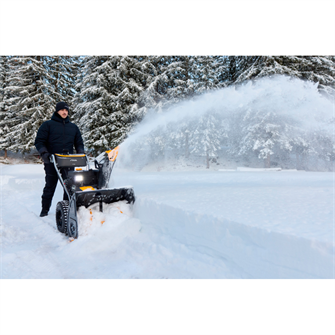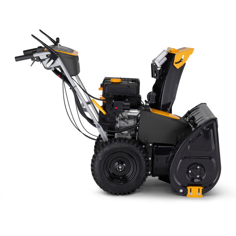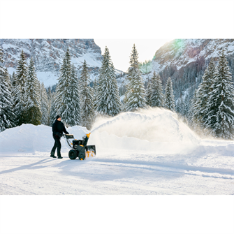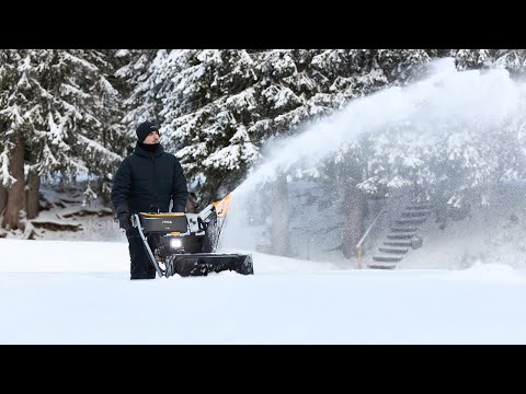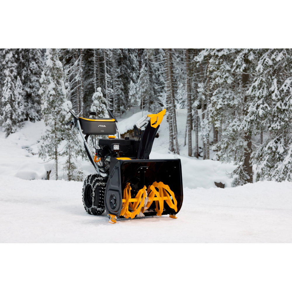 STIGA ST 966 er en robust to-trins sneslynge udviklet til at håndtere selv tunge snemængder hurtigt og effektivt. Med en kraftfuld 302 cc STIGA-benzinmotor, elektrisk startfunktion helt ned til -30 °C og en arbejdsbredde på 66 cm klarer maskinen nemt både stier, indkørsler og større arealer. Den savtandede sneskrue og det nye tre-bladede blæserhjul giver en imponerende kastelængde på op til 15 meter, så sneen ryddes på minimal tid – også mens sneen falder tæt.