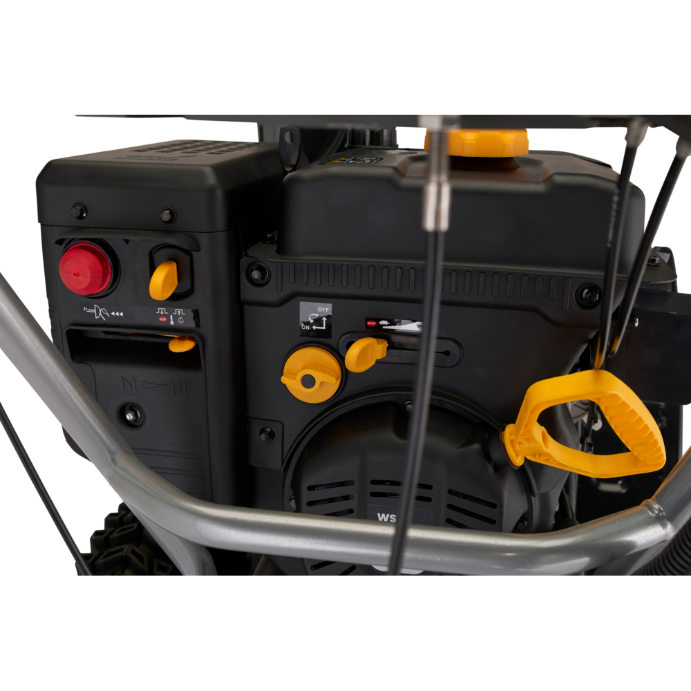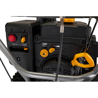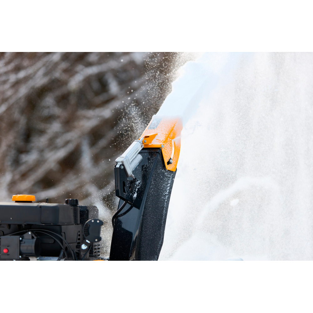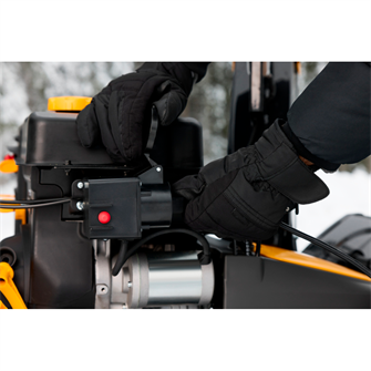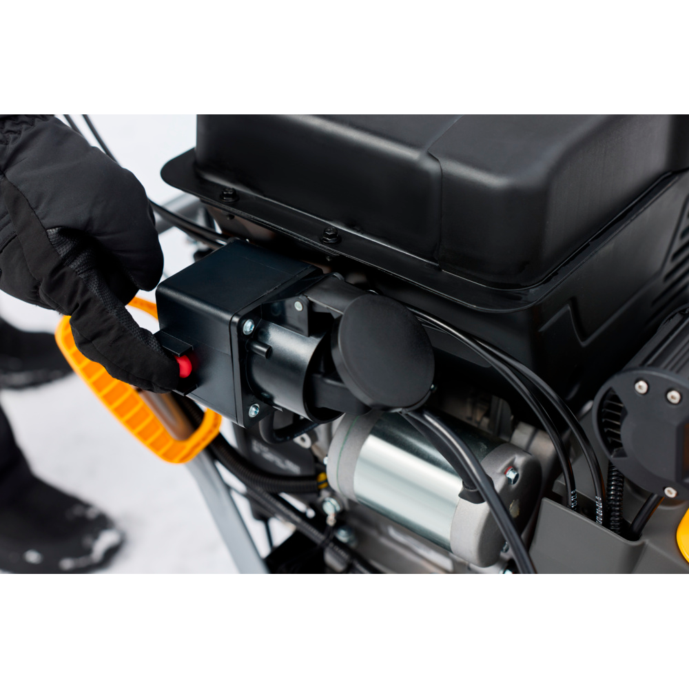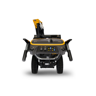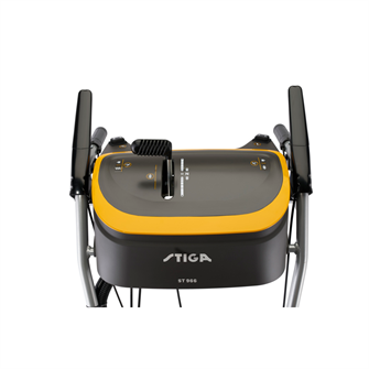 ST 966 er udstyret med et intuitivt elektrisk betjeningspanel, der giver fuld kontrol med et minimum af håndtag. Herfra justeres både udkasterrør og deflektor elektrisk, så sneen kan styres præcist med 180° rotation og fleksibel kastehøjde. Maskinen inkluderer også opvarmede håndtag og indikator for brændstofniveau, hvilket sikrer komfort og overblik under selv krævende vinterforhold.