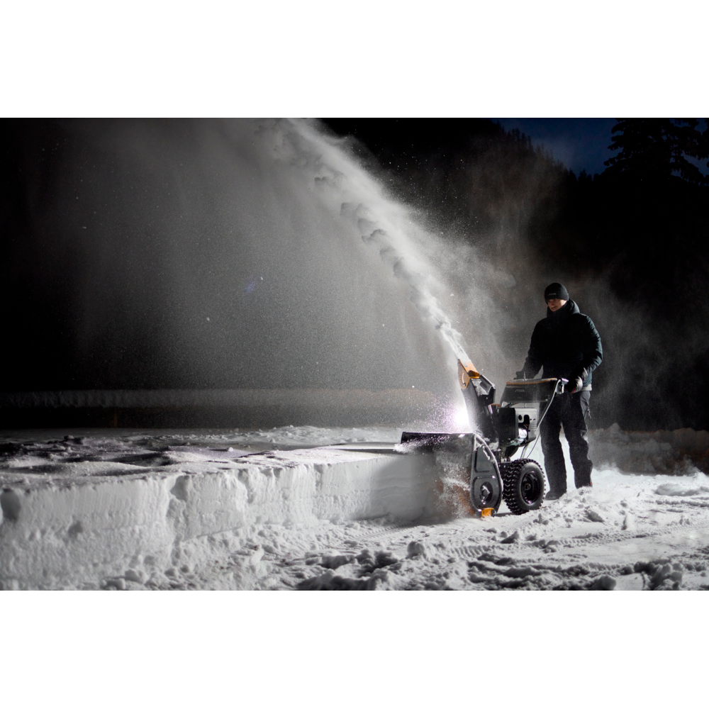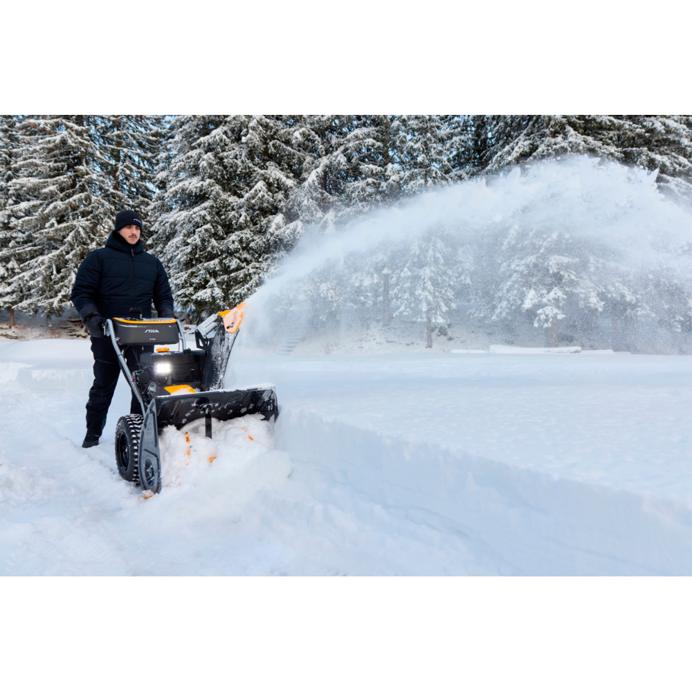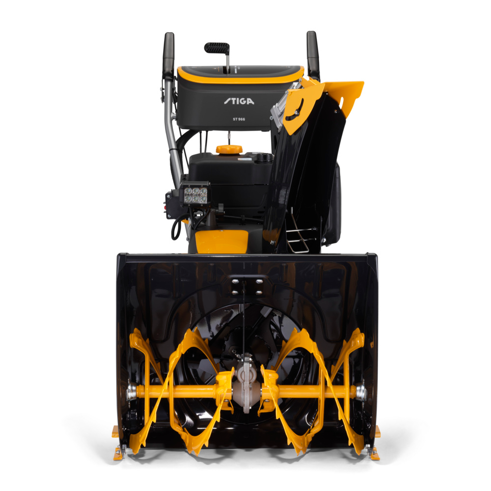 Med seks fleksible LED-forlygter – som kan justeres i flere retninger – bevarer du optimal sigtbarhed, selv i mørke og kraftigt snefald. De store 16" Snow Hog-hjul og den hydrostatiske transmission sikrer stabil drift, minimalt vibrationsniveau og høj komfort. STIGA ST 966 leverer en kombination af styrke, teknologi og brugervenlighed, der gør snerydningen både hurtigere og lettere.