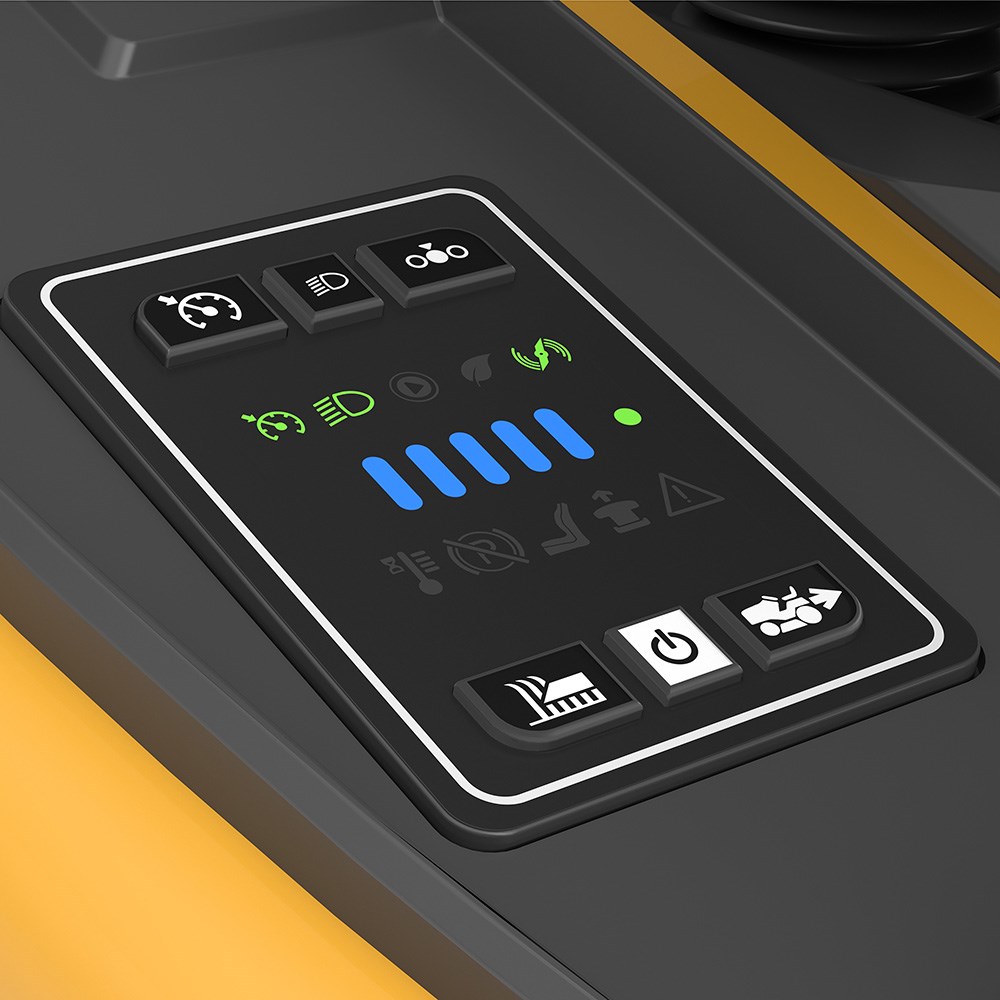 Bag rattet har du ikke bare et godt, fysisk overblik, når du kører Swift 372e - du har også et godt overblik rent elektronisk. Traktoren har Bluetooth, og med STIGAs app kan du blandt andet se ladeprogrammer og indstillinger, du kan få et virtuelt instrumentbræt på traktoren, ligesom du kan læse brugervejledningen, lave indstillinger og meget mere.