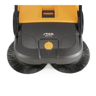 Med STIGA SWP 475 får du en fejemaskine, der ikke kun opsamler støv og snavs, men også større ting såsom blade, dåser, papir o.s.v. Fejemaskinen kan anvendes på hårde overflader såsom fortove og indkørsler og anbefales til arealer på op til 2900 m².