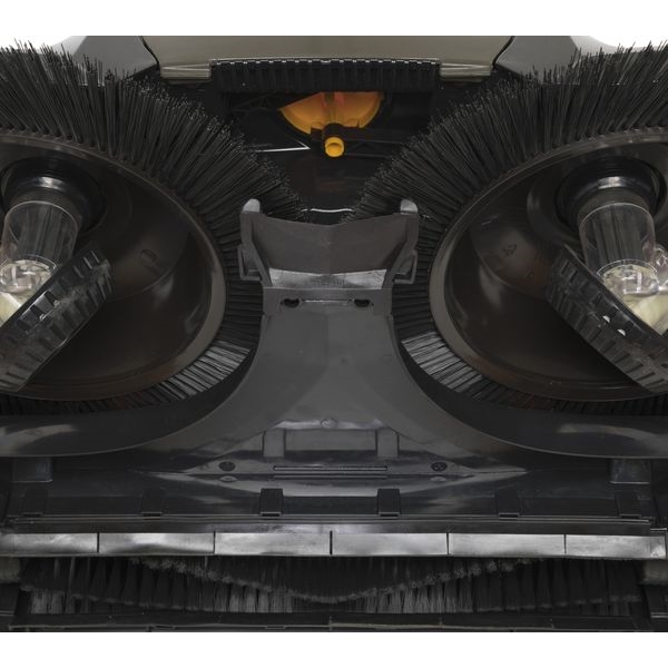 Derudover har fejemaskinen en opsamler på 50 liter og en stor rulle på undersiden. Selv de mindste partikler bliver opsnappet på grund af de to støvfiltre, der er placeret foran på opsamleren.