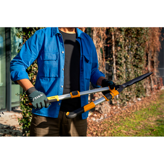 Den lysegule finish gør det nemt at finde saksen i tæt vegetation. Hækkesaksen leveres med et beskyttende cover, som sikrer sikker opbevaring, når den ikke er i brug. STIGAs teleskopiske hækkesaks kombinerer præcision, holdbarhed og ergonomi, hvilket gør den til det ideelle redskab til både private og professionelle haveejere.