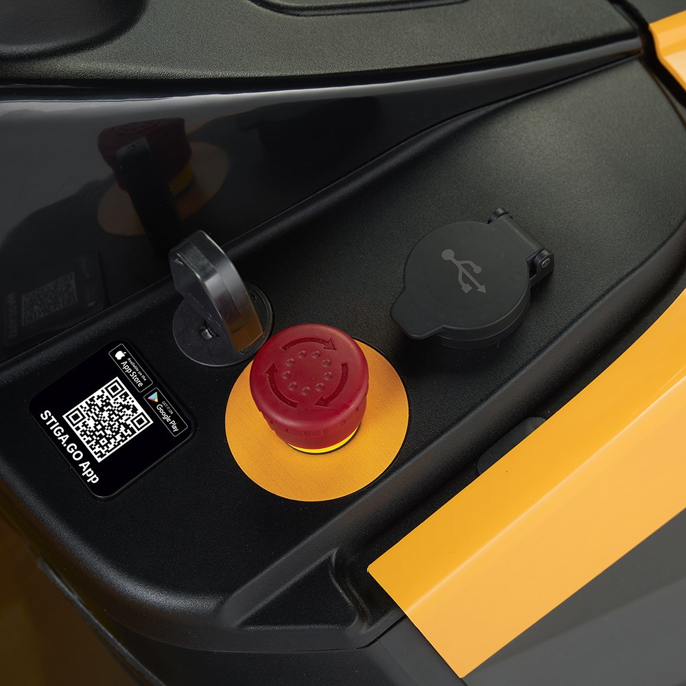Bag rattet har du fuld kontrol over Tornado 598e. Den elektriske transmission kører direkte på én pedal - tryk ned, og traktoren kører - og den bremser så snart du slipper speederen. Samtidigt kan du med e-Ride koble din telefon til traktoren med Bluetooth og med STIGA-appen kan du tjekke alt på traktoren. Alt fra servicemeddelelser til batteritilstand er lige ved hånden.