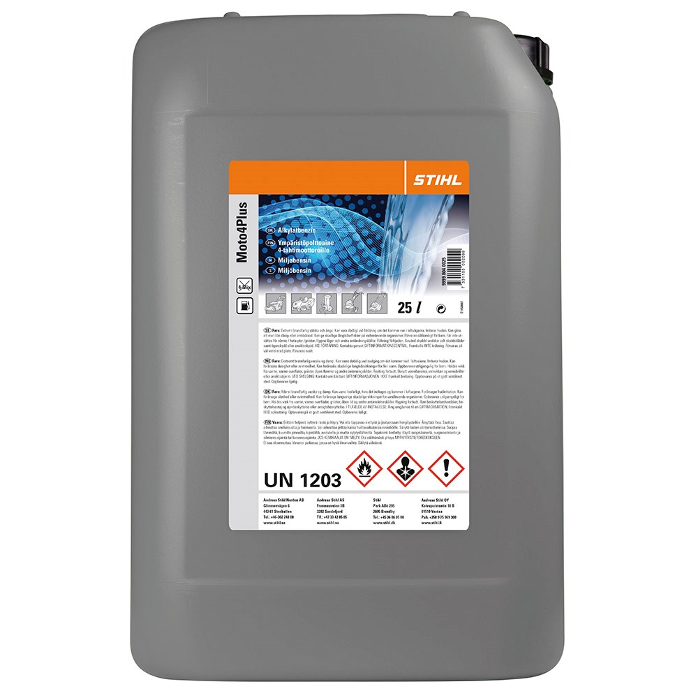Moto4Plus er Stihls specialudviklede benzin til de små, men højtydende firetaktsmotorer. Moto4Plus er optimeret med henblik på at skabe en benzin, som giver masser af ydelse, men samtidigt er brugervenlig med en begrænset udledning fra motorens udstødning. Moto4Plus er samtidigt også en ethanolfri benzin.