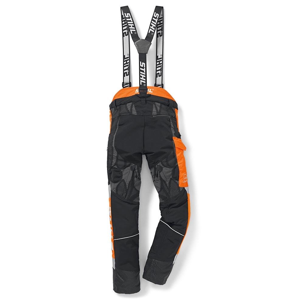 Ekstremt slidstærke beskyttelsesbukser med skæreindlæg ned over hele benet og unik komfort fremstillet af STIHL selv i deres eget materiale, ProElast, hvorved bukserne her er det bedste, du kan få, til professionelt arbejde under særligt hårde forhold og f.eks. for arborister i trækroner.