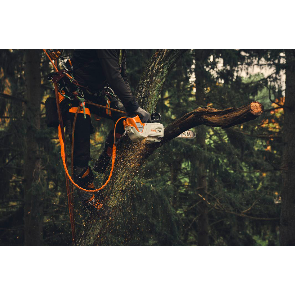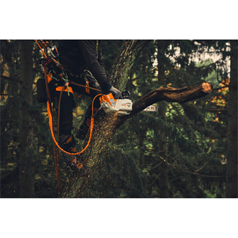 AP 2-i-1-strømadapteren er et ideelt tilbehør til batteridrevne arboristsave, når arbejdet kræver mange store snit på kort tid – eksempelvis ved professionel fældning af nåletræer. Ved at placere batteriet i bælteremmen mindskes vægten på selve saven betydeligt, hvilket gør arbejdet lettere, mere effektivt og mindre belastende under krævende klatreopgaver.