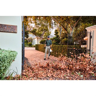 Det kompakte design og den velafbalancerede konstruktion gør løvblæseren let at håndtere og styre – selv over længere tid. Med motor, blæser og batteri centralt placeret, får du en maskine med lavt inertimoment, som er nem at manøvrere. Det vinklede blæserør er designet til at reducere belastningen på håndleddet og gør arbejdet mere behageligt, uden uønsket rotation eller pulsvirkning under brug.