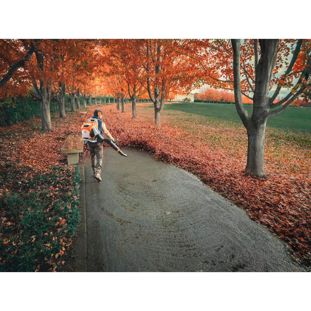 Takket være STIHLs avancerede støjreduktionssystem arbejder BRA 600 særdeles lydsvagt sammenlignet med traditionelle blæsere. Højfrekvente lyde dæmpes markant, hvilket giver en mere behagelig lydoplevelse for både bruger og omgivelser. Det gør den ideel til brug i byområder, boligkvarterer, parker og andre støjfølsomme miljøer, hvor der stilles høje krav til lavt støjniveau.