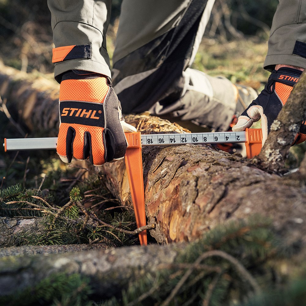 Diameterlære til måling af træstammers diameter. Værktøjet er fra tyske Stihl og måler op til 32 cm.