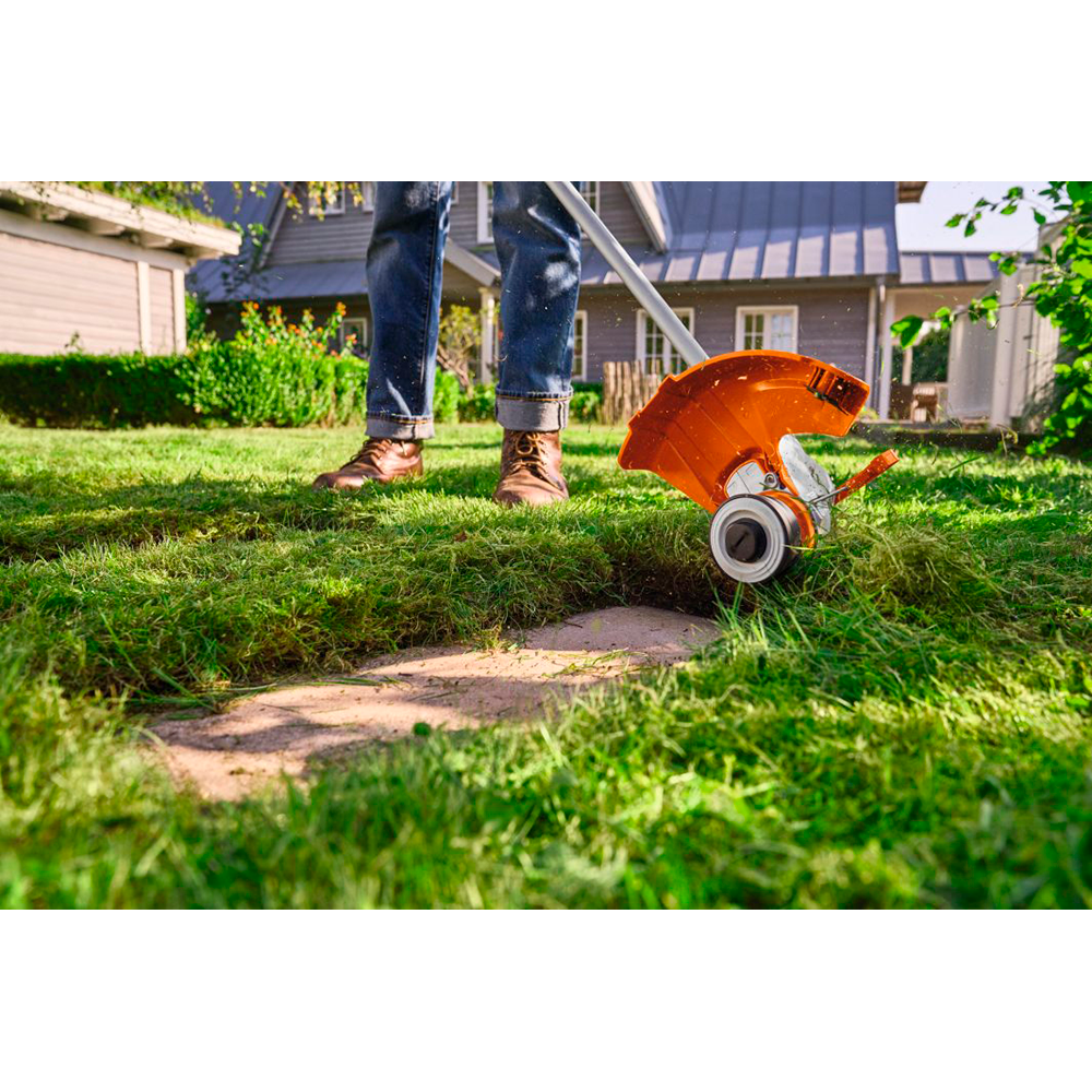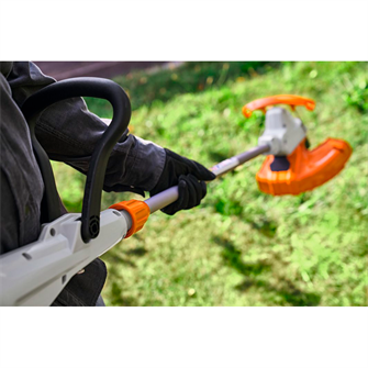 For at sikre en komfortabel arbejdsstilling kan både skaftlængde og loophåndtag justeres helt uden brug af værktøj. Klippehovedet kan vinkles i tre positioner, så du let kan tilpasse maskinen til forskellige arbejdsopgaver. FSA 50 kan hurtigt omdannes fra græstrimmer til kanttrimmer, og den fleksible afstandsbøjle gør det muligt at trimme præcist og skånsomt omkring buske, træer og andre forhindringer i haven.