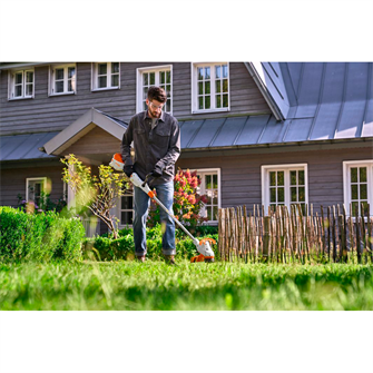 STIHL FSA 50 er en batteridrevet græstrimmer i STIHL AK-systemet, der kombinerer stærk klippeevne med lav vægt og høj brugervenlighed. Den egner sig perfekt til trimning af mindre græsarealer, pleje af græskanter og lettere rydningsarbejde omkring huset. Takket være intelligent elektronik arbejder FSA 50 med en konstant og stabil effekt - uanset batteriets aktuelle ladestatus. Den stille elektriske motor gør maskinen ideel til brug i boligområder, hvor støjniveauet skal holdes lavt.