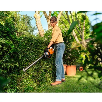 Hækkeklipperen har en kraftbesparende og ergonomisk arbejdsstilling, selv ved længerevarende arbejde, takket være optimal balance, drejeligt multifunktionshåndtag, bøjlegreb med indbygget kontakt og STIHL antivibrationssystem. Den har også en påskruet knivstødbeskyttelse til slidsvagt arbejde langs jorden eller langs mure. Med en EC-motor, der giver konstant ydelse og lang levetid, kan du klippe med tillid og præcision.