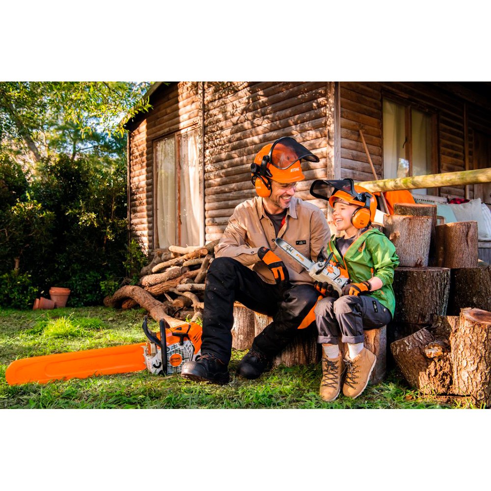 Giv børnene en realistisk legeoplevelse med denne virkelighedstro STIHL legetøjshjelm i robust ABS-kunststof. Hjelmen har nedklappeligt visir, justerbar størrelse og nedklappeligt høreværn, så den ligner den professionelle udgave. Den har ingen beskyttende funktion, men er perfekt til rolleleg for børn fra 3 år.