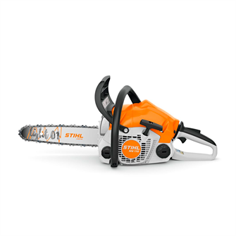Motorsaven er udstyret med STIHL antivibrationssystem, som reducerer belastning og gør længere arbejdsopgaver mere behagelige. Takket være kædespænding i siden kan savkæden justeres sikkert og nemt. Kombihåndtaget med stopfunktion gør det enkelt at genstarte saven efter korte pauser, og med étgrebsbetjeningen kan alle funktioner – start, drift og stop – udføres med én hånd.
