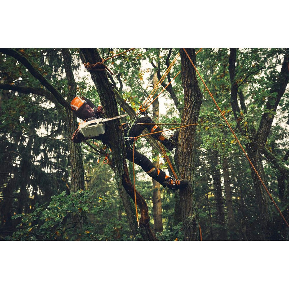 STIHL MSA 190 T er en professionel batteridrevet motorsav, der er særligt udviklet til træplejere. Den er ideel til opgaver som kronebeskæring, fjernelse af dødt træ og håndtering af stamme- og rodskud. Takket være den høje kædehastighed på op til 20 m/s og imponerende acceleration leverer saven præcise, rene snit, hvilket gør den særligt egnet til opgaver, hvor nøjagtighed er altafgørende. Den robuste barkstøtte hjælper med at stabilisere saven i træet og sikrer bedre kontrol under arbejdet.
