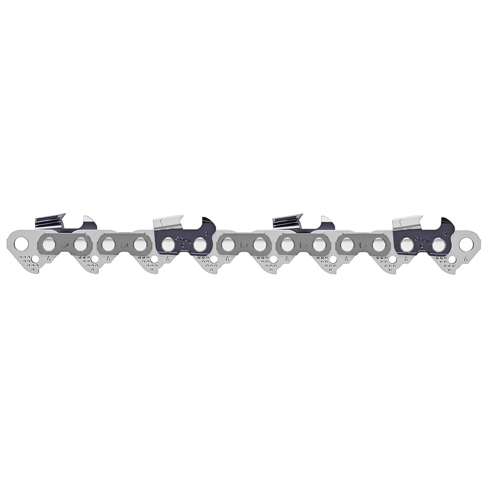 Det giver to fordele: Dels kan kæden slibes uden filemål og er derfor nem at slibe ude i skoven - og dels giver formatet en god og effektiv skæreydelse over længere tid. Desuden er det ikke muligt at få filet for dybt på kæden takket være det sekskantede design, som er super hurtigt at file skarpt igen.
