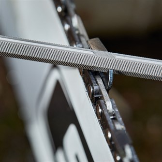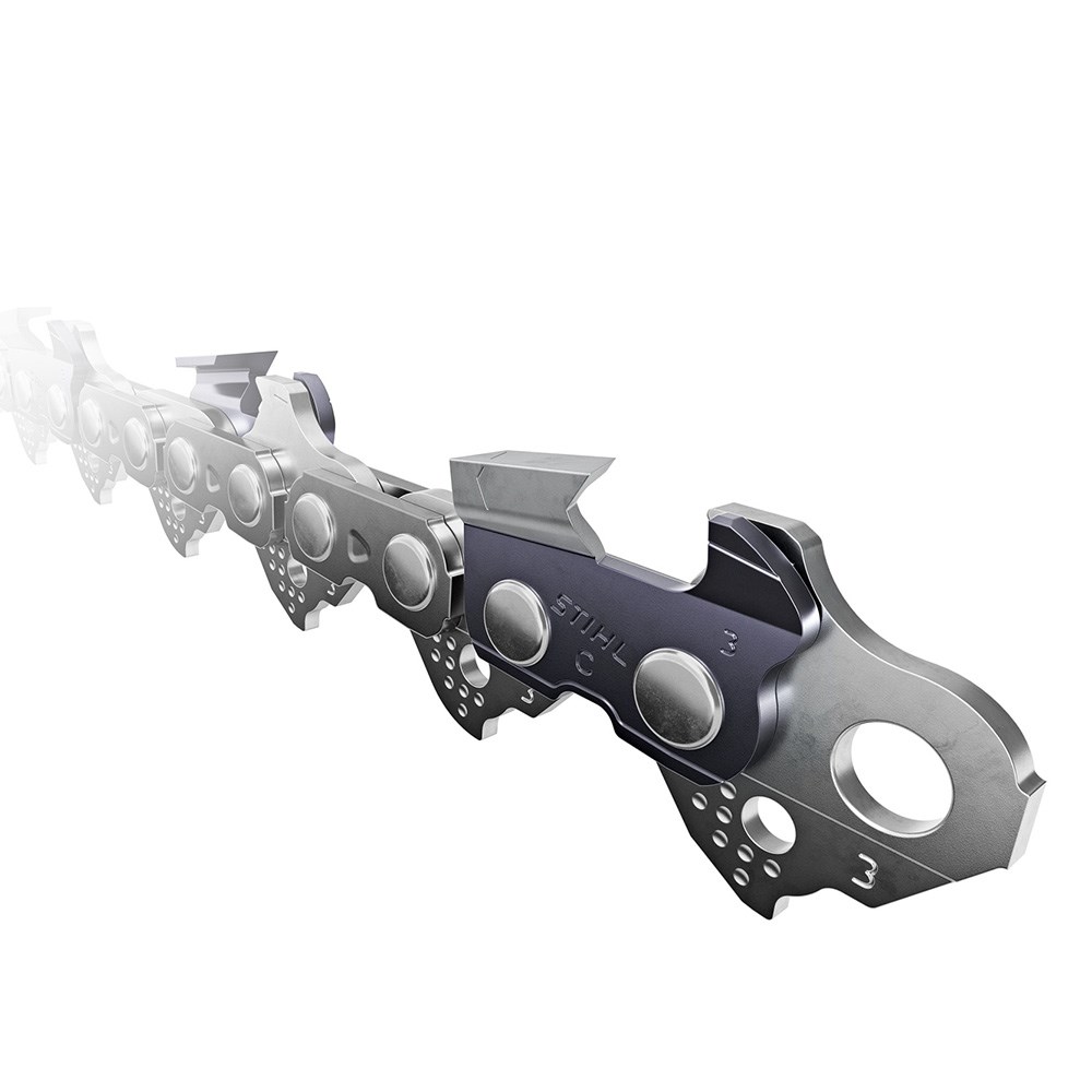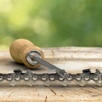 Det giver to fordele: Dels kan kæden slibes uden filemål og er derfor nem at slibe ude i skoven - og dels giver formatet en god og effektiv skæreydelse over længere tid. Desuden er det ikke muligt at få filet for dybt på kæden takket være det sekskantede design, som er super hurtigt at file skarpt igen.