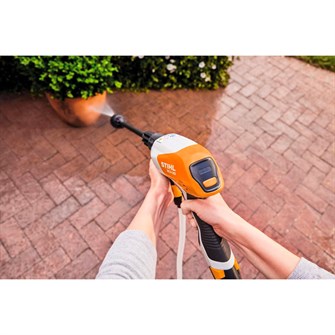 Den lette og kompakte STIHL RCA 20 er ideel til mindre rengøringsopgaver – både hjemme og på farten. Den drives af STIHL AS-systemets litium-ion-batteri og kræver ingen stationær strøm- eller vandtilslutning. Brug vand fra en regntønde via den medfølgende sugeslange eller den sammenklappelige 20-liters vandbeholder.
