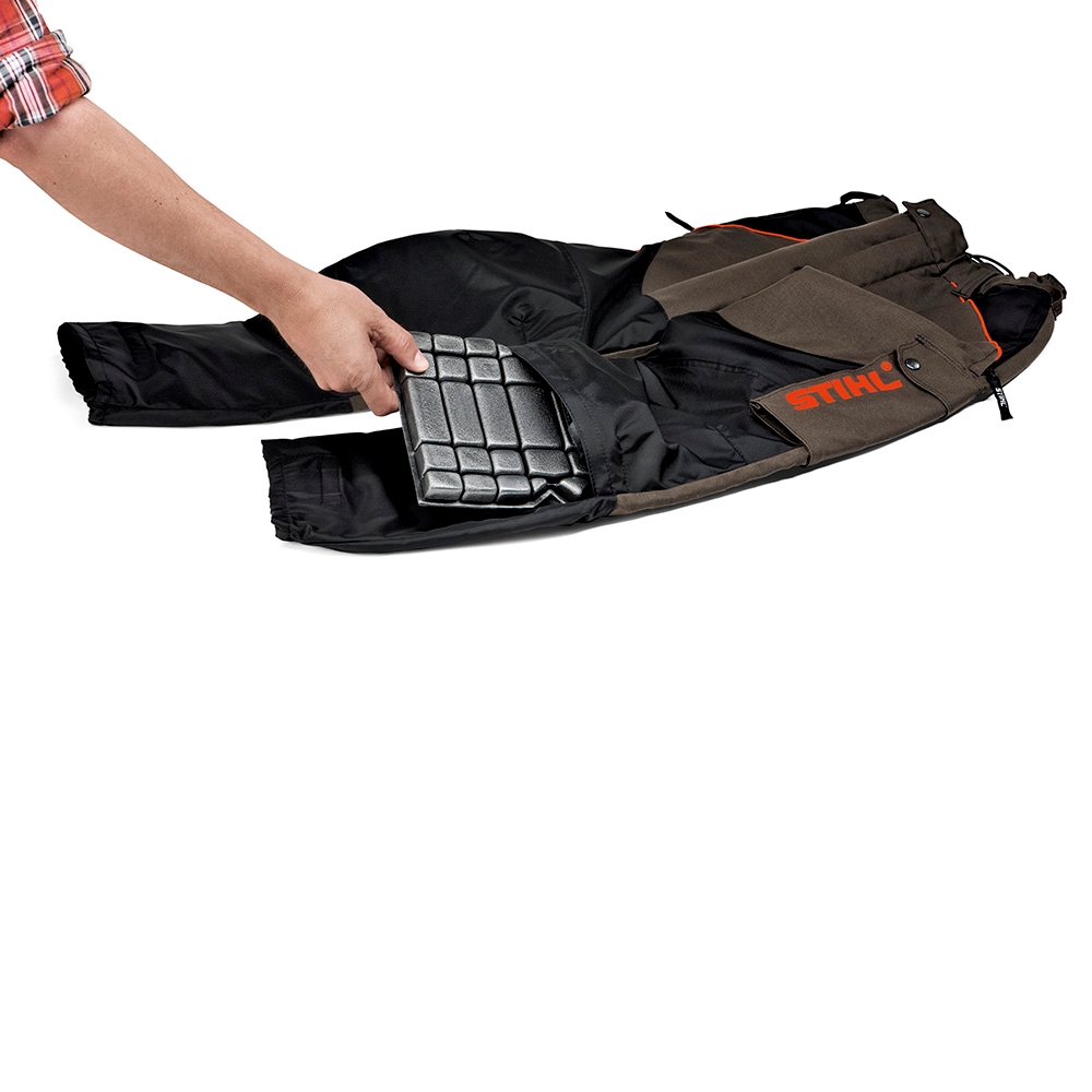 Med STIHLs rydningsbukser FS 3 PROTECT får du bukser, der er torne-, stød- og vandresistente via det solide yderstof, Vintage Optik.