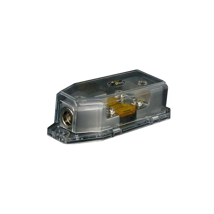 Stinger mini-ANL-sikringsholder med 1/0 eller 4 gauge input og enten 4 eller 8 gauge output. Lille, kompakt design med beskyttelse mod ætsende væsker.
