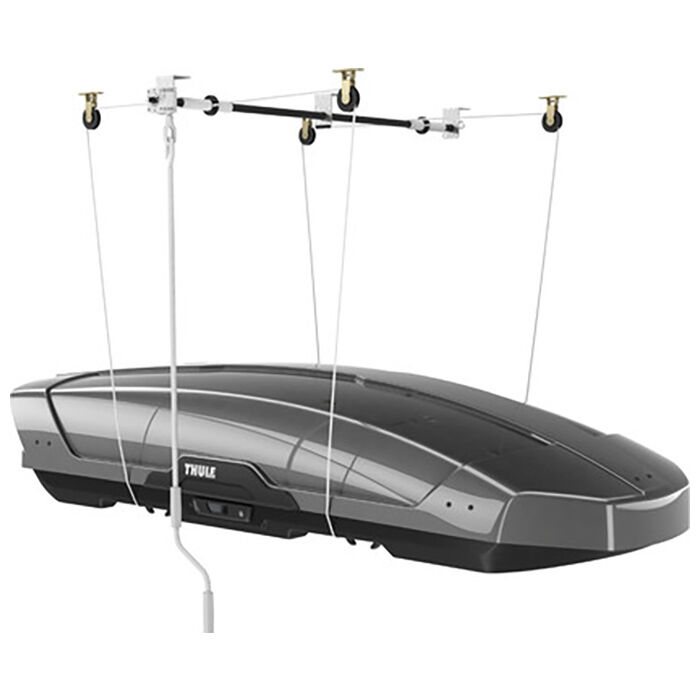 Thule MultiLift er den perfekte måde at opbevare en tagboks, i carporten eller hvor der er plads til den.