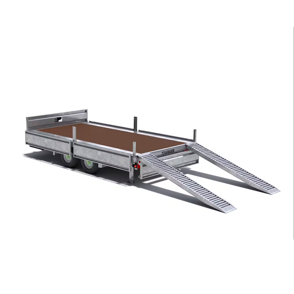 TOWMATE Bison Flatbed Trailer er en stærk og fleksibel trailer, udviklet til transport af mange typer materialer og udstyr. Fremstillet fra bunden i Storbritannien kombinerer Bison dokumenteret holdbarhed med praktiske funktioner, så du får en trailer, der altid leverer – uanset opgaven. Serien er skabt med fokus på både professionelle og private brugere, der har behov for en pålidelig og kraftig flatbed-løsning.